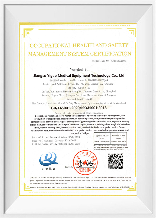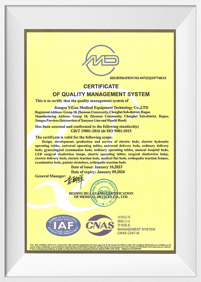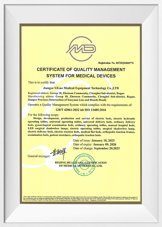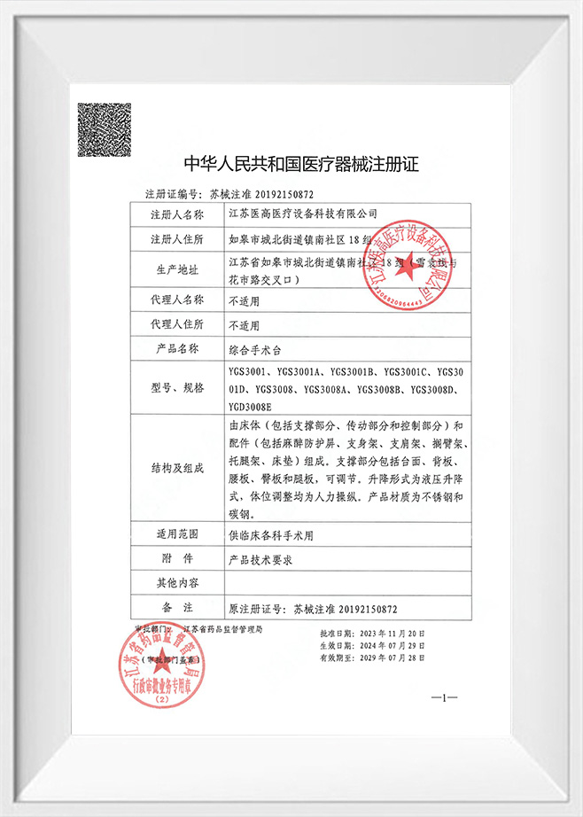 Kapsamlı ameliyat masası kayıt sertifikası