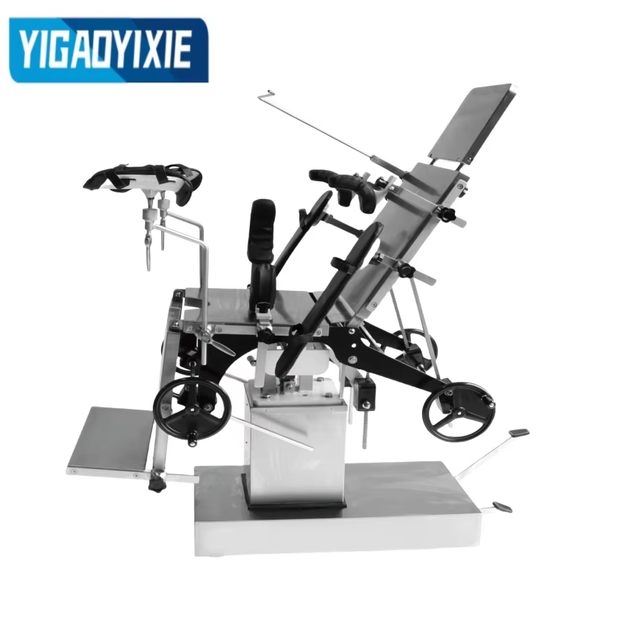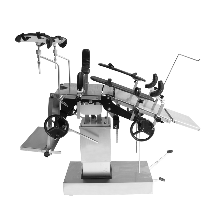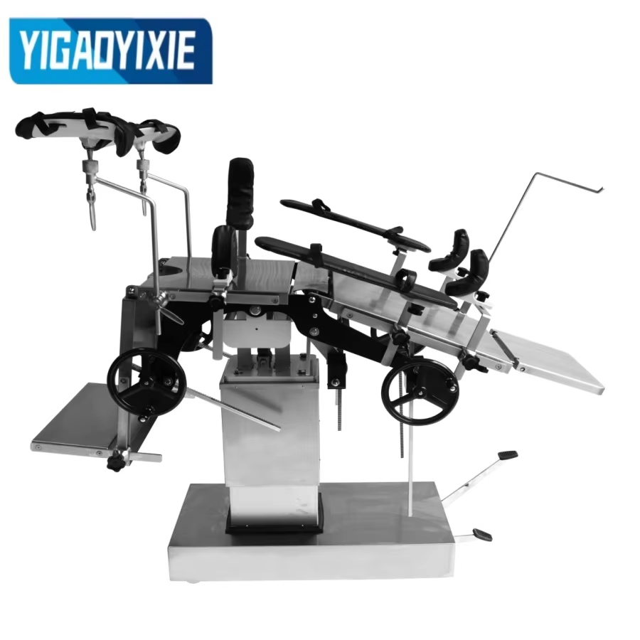 YGS3001 Paslanmaz çelik hidrolik ameliyat masası, ameliyat sırasında hastaları desteklemek için tasarlanmış ve çeşitli cerrahi operasyonlarda yaygın olarak kullanılan yüksek performanslı bir tıbbi cihazdır. Ameliyat masası, farklı cerrahi pozisyonların ihtiyaçlarını karşılamak üzere esnek bir şekilde ayarlanabilen bir başlık, arkalık, bel tahtası, kalça tahtası ve entegre bacak tahtasından oluşur. Hidrolik kaldırma sistemi, hidrolik yağ pompasını, kullanımı kolay, sağlam ve gürültüsüz bir ayak pedalı aracılığıyla çalıştırır ve yatak yüksekliğinin sık sık ayarlanmasını gerektiren işlemler için uygundur. Arkalık ve bacak panelinin yukarı aşağı katlanması, öne ve arkaya eğilmesi, sola ve sağa eğilmesi elle kranklanan dişliler, sonsuz dişliler ve kremayer sistemleri ile hassas bir şekilde kontrol edilebilmektedir. Başlık spiral kilitle tasarlanmıştır ve bel tahtası stabilite ve güvenliği sağlamak için bir el krankı ile ayarlanır. Ameliyat masasının üst kısmı dayanıklı ve temizlemesi kolay, sprey kaplamalı karbon çelikten yapılmıştır. Taban ve sütun kabuğu, uzun süreli kullanım için ekipmanın stabilitesini ve görünümünü garanti eden, korozyona dayanıklı ve oksidasyon önleyici paslanmaz çelikten yapılmıştır.
