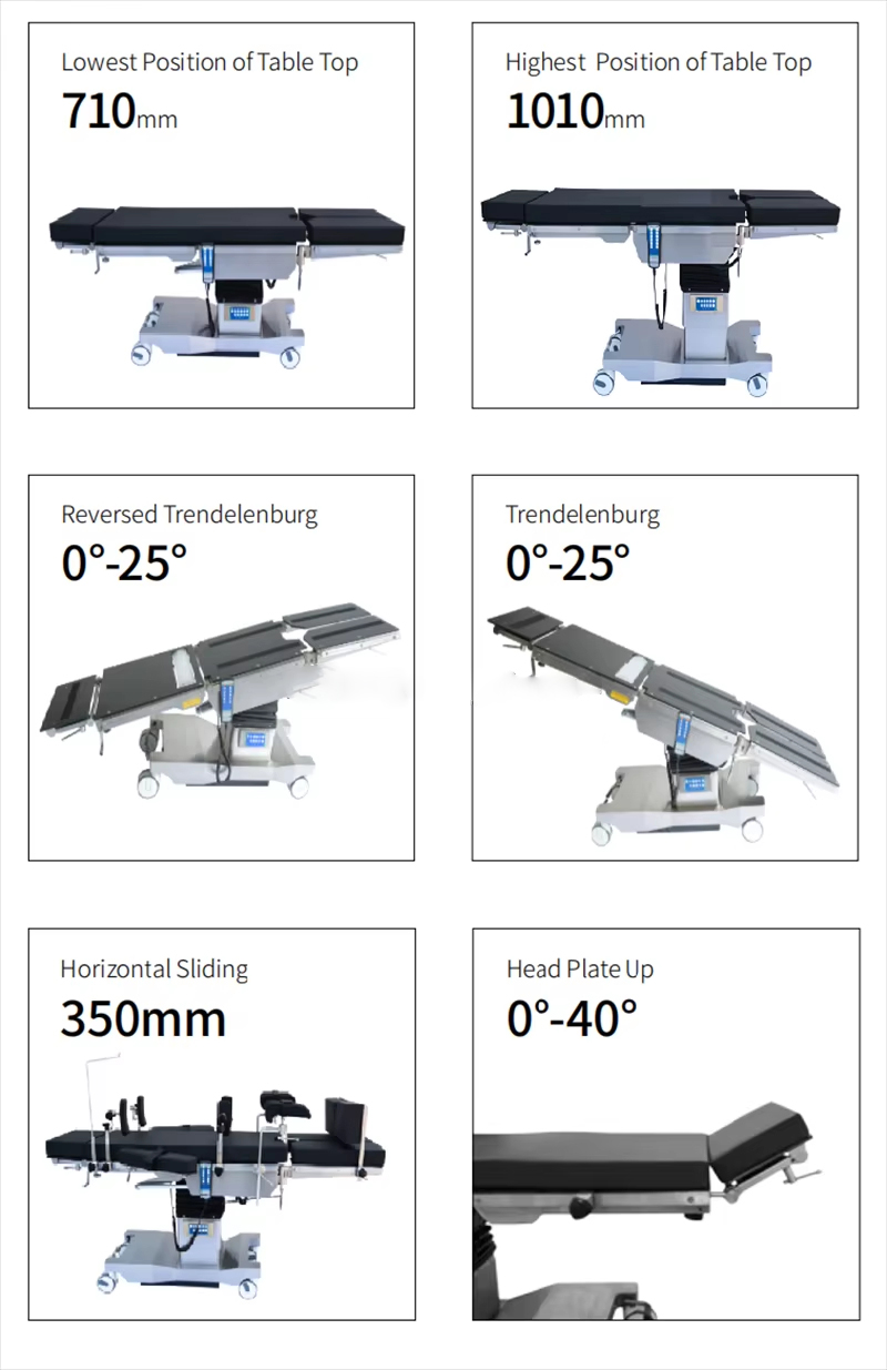 Masa dört bölüme ayrılmıştır: baş, sırt (bel köprüsü dahil), kalça ve bacak kısımları; masaüstü, X-ışını geçirgenliğine sahip yüksek mukavemetli kompozit malzemeden yapılmıştır; fotoğraf çekmek için C koluyla kullanılabilir.