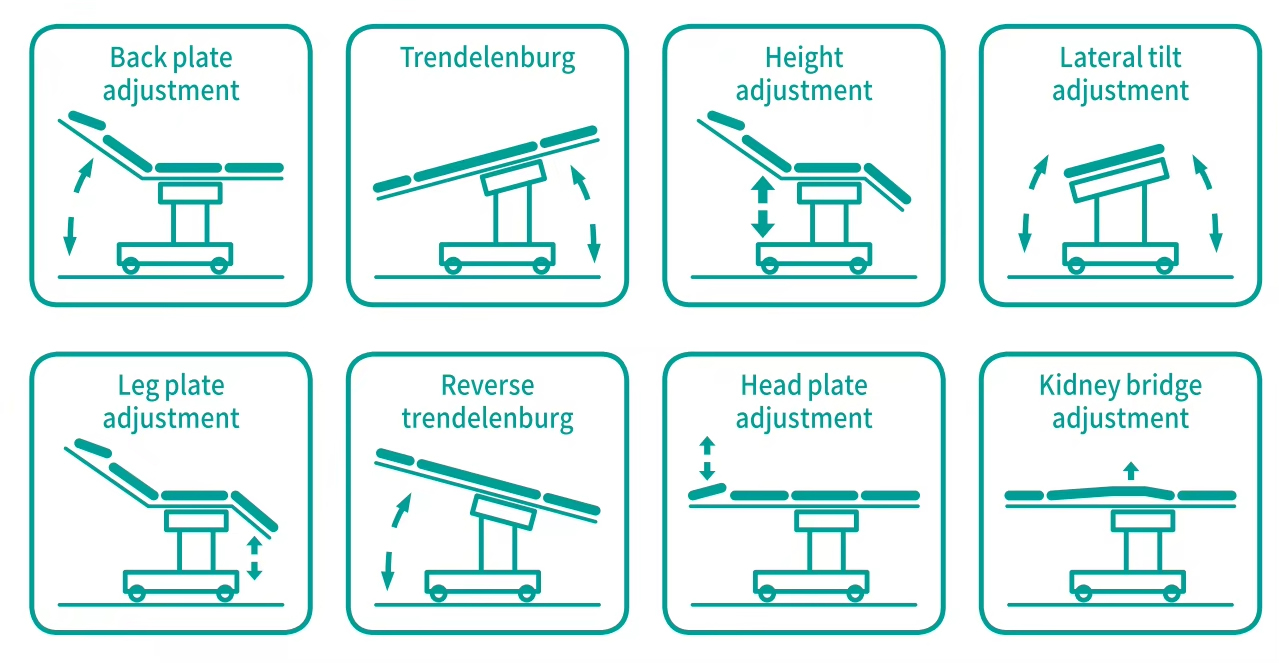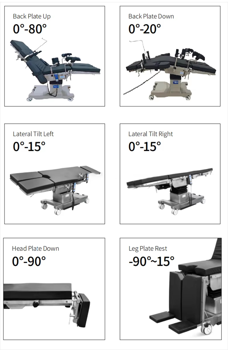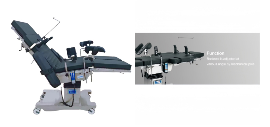 Masanın kaldırılması, ileri ve geri eğimi, sola ve sağa eğimi, arka plakanın yukarı ve aşağı katlanması ve öteleme işlemlerinin tümü elektrikli itme çubuğu tarafından kontrol edilir.