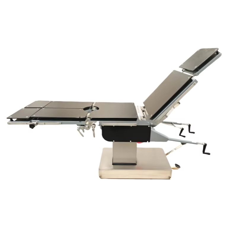 YGS3008A Omurga Hidrolik ameliyat masası, omurga, baş ve boyun, göğüs ve karın, perine, uzuvlar, kadın doğum, jinekoloji, oftalmoloji, kulak burun boğaz ve ortopedi gibi çeşitli ameliyatlarda yaygın olarak kullanılan yüksek performanslı bir tıbbi cihazdır. Ameliyat masası; yukarı ve aşağı katlama, ön ve arka eğim, arkalık ve bacak panelinin sola ve sağa eğimi dahil olmak üzere esnek ayar fonksiyonlarına sahip bir yatak başlığı, bir arkalık, bir bel paneli, bir kalça paneli ve bölünmüş bir bacak panelinden oluşur ve ameliyat sırasında hastanın pozisyonunun stabilitesini ve konforunu sağlamak için elle kranklanan dişli, sonsuz dişli ve raf sistemi aracılığıyla hassas kontrol. Hidrolik kaldırma sistemi, kullanımı kolay, stabil ve gürültüsüz, sık yükseklik ayarı gerektiren ameliyatların ihtiyacını karşılayan, ayakla çalıştırılan bir hidrolik pompa ile tahrik edilmektedir. Çift katmanlı yapı tasarımı, röntgen çekimini destekler, görüntüleme incelemelerini kolaylaştırır ve ameliyatın doğruluğunu sağlar. Ameliyat masası, ekipmanın uzun süreli ve istikrarlı kullanımını sağlayan, iyi korozyon direnci ve dayanıklılığa sahip, sprey kaplı karbon çelik masa tablası ve paslanmaz çelik taban ve sütun kabuğunu benimser. Genel tasarım, hastaların güvenliğini ve konforunu sağlarken doktorlara hassas bir çalışma platformu sağlayarak güvenlik ve stabiliteye odaklanıyor. Çok bölümlü ameliyathaneler için ideal bir seçimdir.